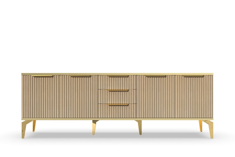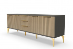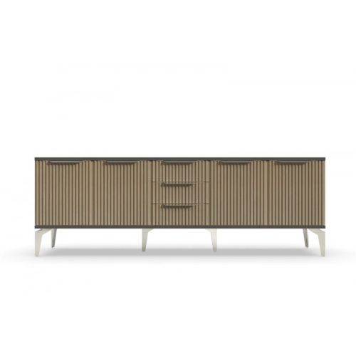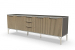 Тумба под телевизор "Рейн" является идеальным дополнением к любому современному интерьеру. Она имеет практичный дизайн, который позволяет хранить различные предметы и украшения, при этом оставаясь удобной и функциональной. Рифлёные поверхности придают тумбе уникальный и стильный вид, который будет выглядеть превосходно в вашей гостиной или гостевой комнате.