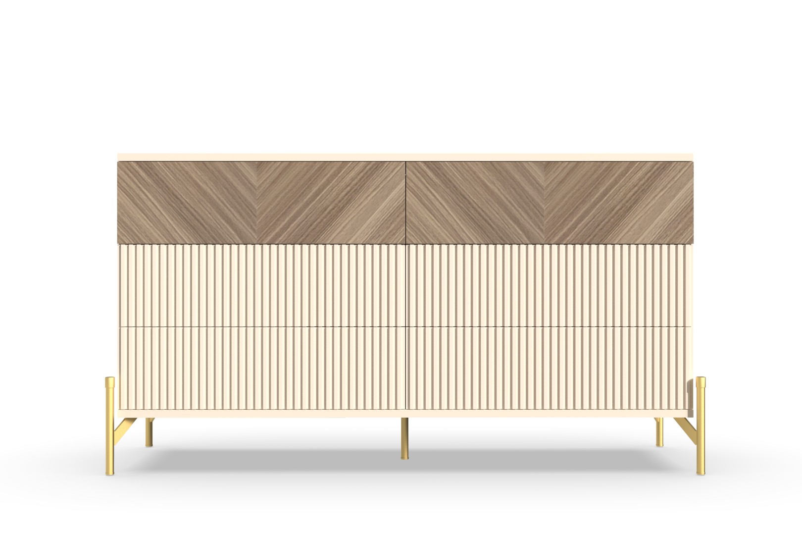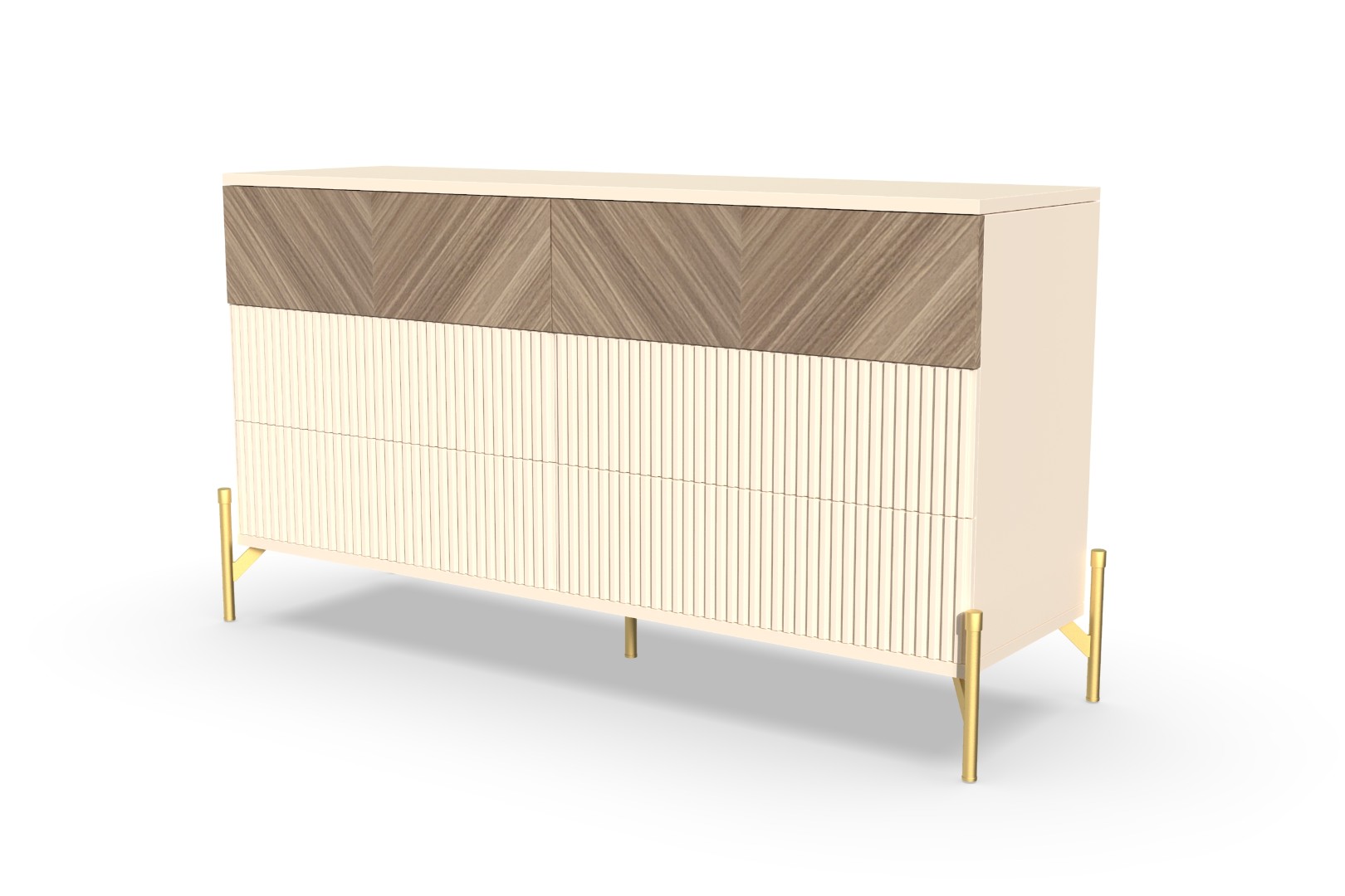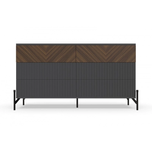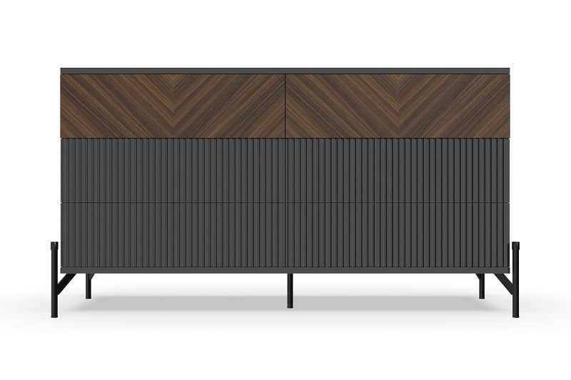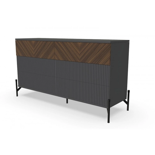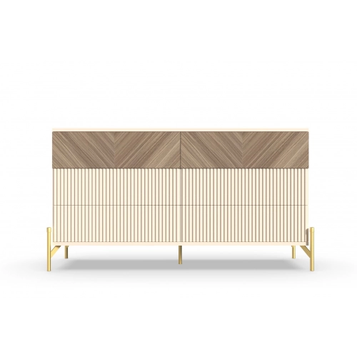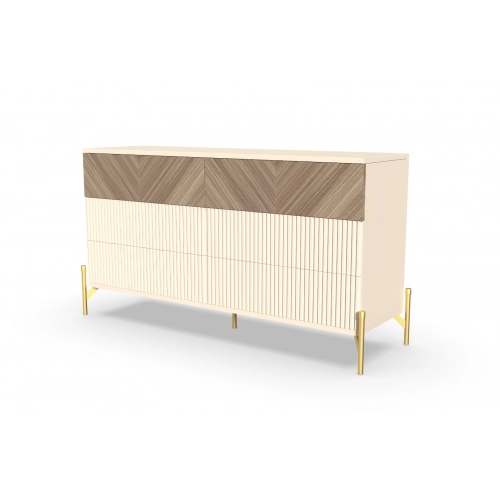 Комод "Шале" от фабрики Geona - это элегантное и практичное решение для хранения вещей в вашей спальне или гостиной. Он оснащен выдвижными ящиками и имеет эффектную отделку в диагональном направлении текстуры, что придает ему изысканный и стильный вид.